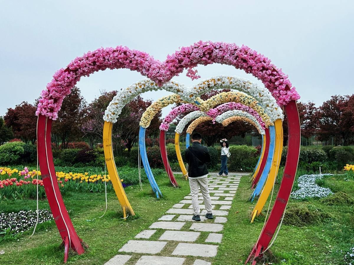 除郁金香外,园区内的大地景观区60亩油菜花田正值盛放,金黄花海与蓝天白云相映成趣。欧洲风情园的风车花田、江南水乡园的樱花溪畔也各具特色。花溪农场、魔法森林乐园等区域配备了烧烤露营、游乐设施,为家庭游客提供了丰富的亲子互动空间。